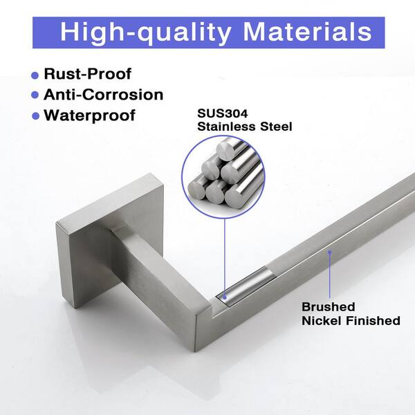 Bath 9 in. Wall Mounted Towel Bar Stainless Hand Towel Bar Towel Holder in Brushed Nickel