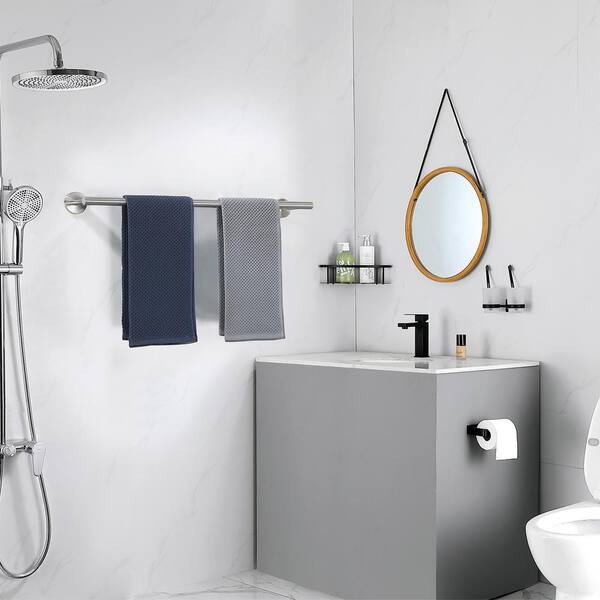 Bathroom 24 in. Wall Mounted Double Towel Bar Towel Holder in Brushed Nickel