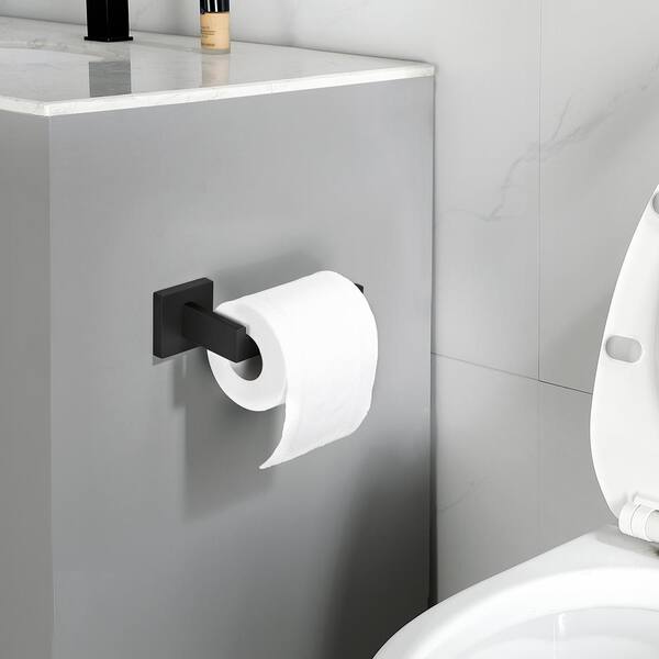 Bathroom Wall-Mount Single Post Toilet Paper Holder Stainless Steel Tissue Roll Holder in Matte Black