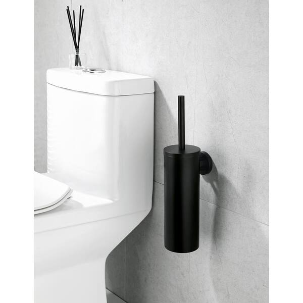 Bathroom Wall-Mounted Toilet Brush and Holder Set in Stainless Steel Matte Black