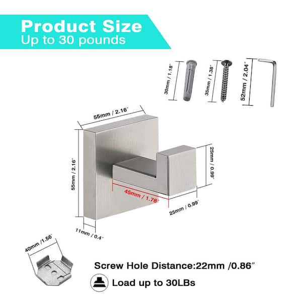 Wall-Mount J-Hook Robe/Towel Hook Square Robe Hook in Brushed Nickel (2-Piece)