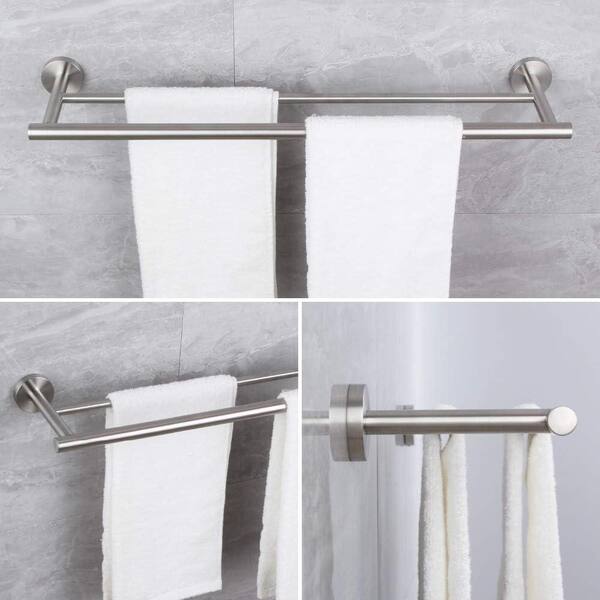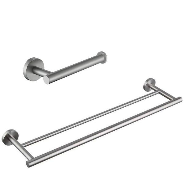 Wall Mounted 2 -Piece Bath Hardware Set with Double Towel Bar Toilet Paper Holder Mounting Hardware in Brushed Nickel