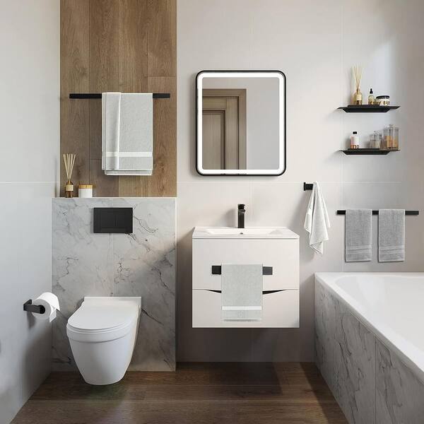 Wall Mounted 2-Piece Bath Hardware Set with Towel Bar Toilet Paper Holder in Matte Black