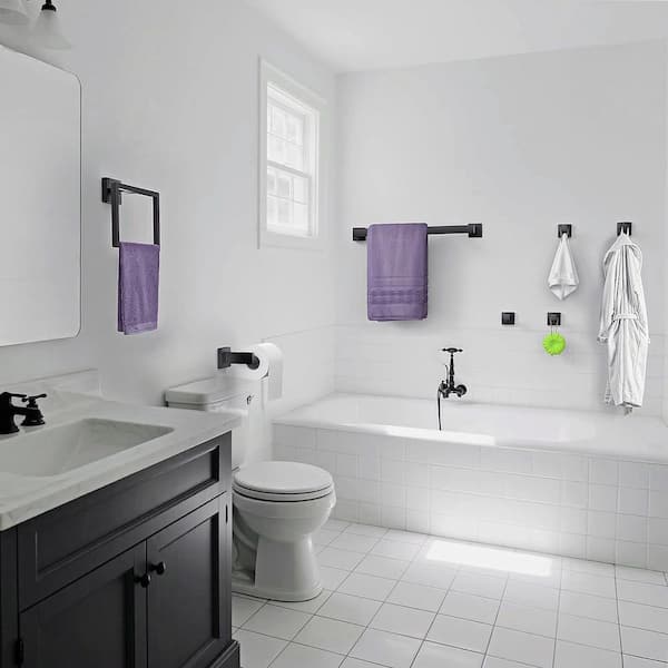 Wall Mounted 5-Piece Bath Hardware Set Towel Bar Set with Towel Ring Mounting Hardware in Matte Black