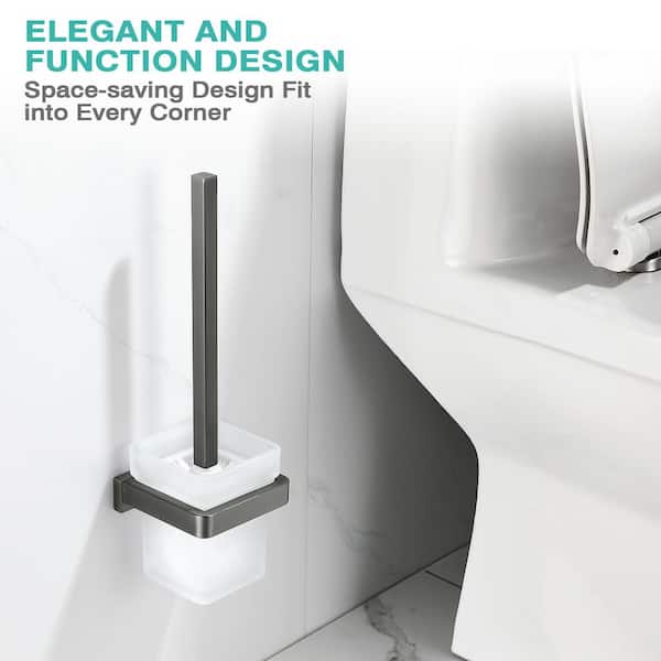 Wall-Mounted Toilet Brush and Holder in Graphite Gray with Stainless Steel Handle and Glass Base