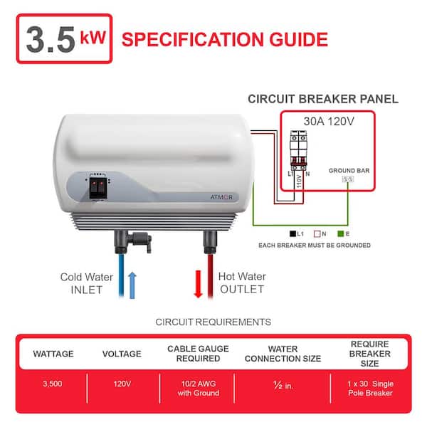 3500 Watts/120V 0.5 GPM Point-of-Use Electric Tankless Water Heater Includes Pressure Relief Device 1-Sink Water Heater