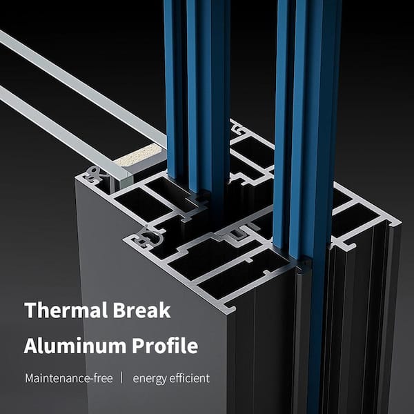 144 in. x 80 in. Matte Black 3 Left 1 Right Out-Swing Thermal Break Aluminum Folding Patio Door with Locks