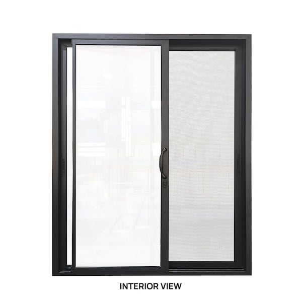 72 in. x 80 in. Matte Black Right Handle Aluminum Sliding Patio Door with Low-E glass, Screen, and Lockset