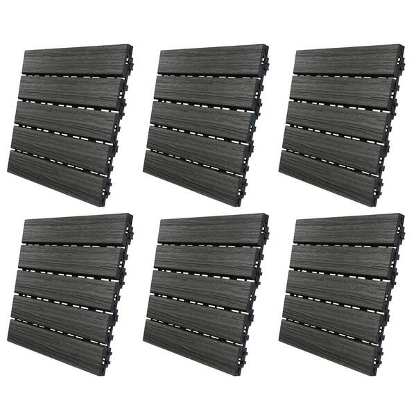 Driftwood Gray 11.8 in. x 1 ft. x 1 ft. Clear Wood Premium Polymer Deck Tile (6-Tile/Case) Tile Trim
