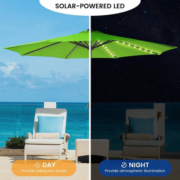 10 ft. Apple Green Round Solar LED Metal Rotation Cantilever Offset Outdoor Patio Umbrella with a Base in Sand