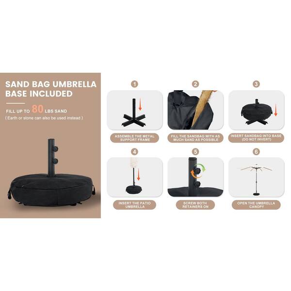 11 ft. Beige Round Solar LED Metal Rotation Cantilever Offset Outdoor Patio Umbrella with a Base in Sand