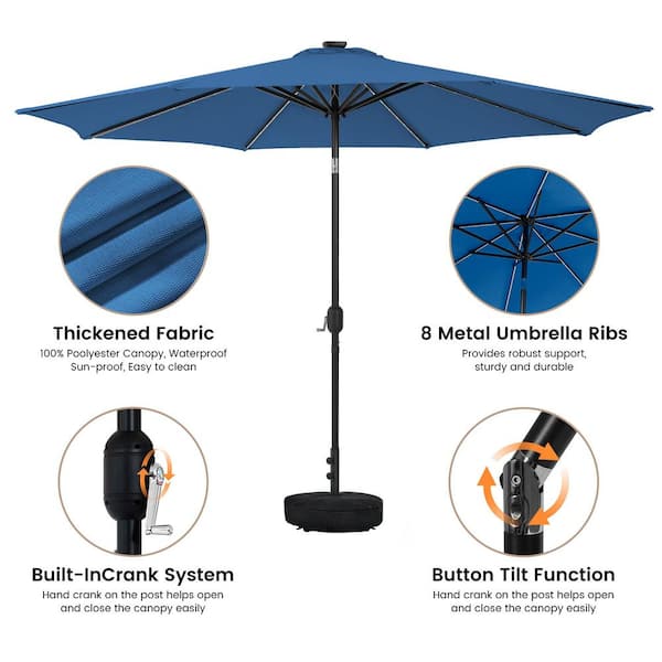 11 ft. Navy Round Solar LED Metal Rotation Cantilever Offset Outdoor Patio Umbrella with a Base in Sand