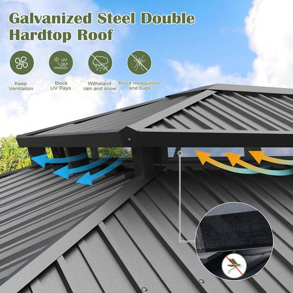 12 ft. x 20 ft. Outdoor Aluminum Frame Hardtop Outdoor Gazebo With Galvanized Steel Double Roof Curtains and Netting