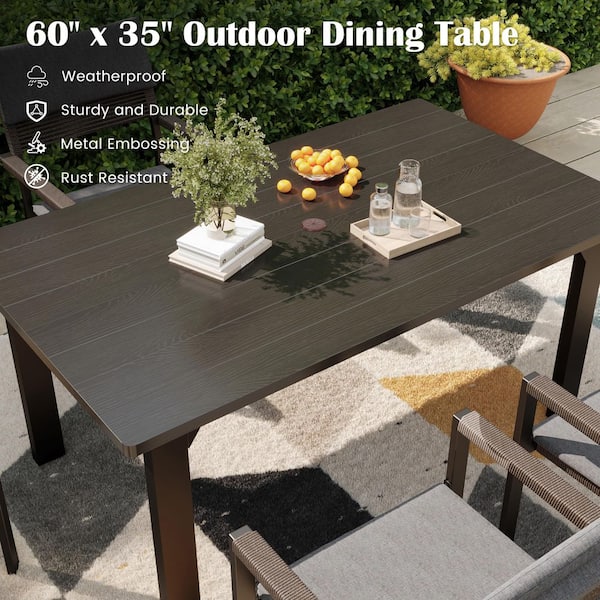 Dark Grey 60 in. Rectangular Metal Patio Outdoor Dining Table with Umbrella Hole