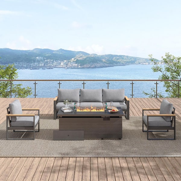 Gray 51 in. 50000 BTU Rectangular Propane Outdoor Fire Pit Table with Glass Wind Guard Lid Fire Glass Beads
