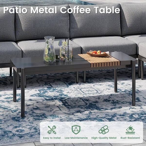 Grey Rectangle Metal Outdoor Patio All-Weather Coffee Table