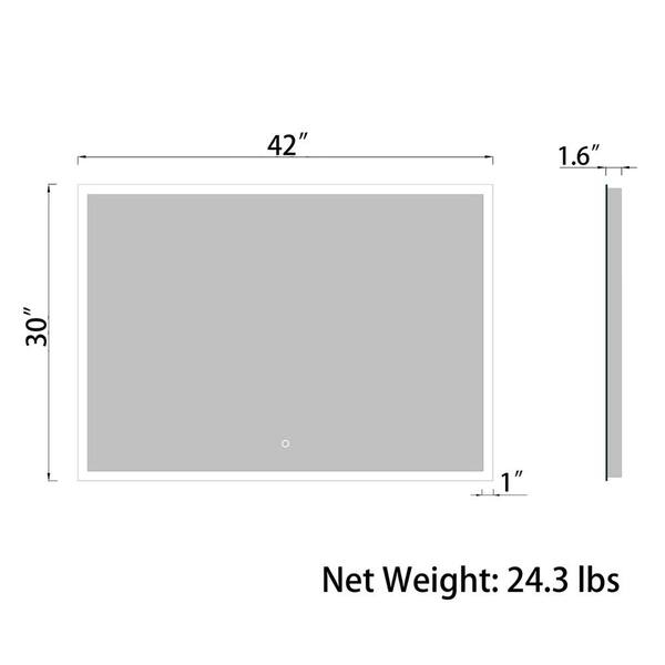 42 in. W x 30 in. H Rectangular Landscape Frameless Wall Mounted LED Bathroom Vanity Mirror
