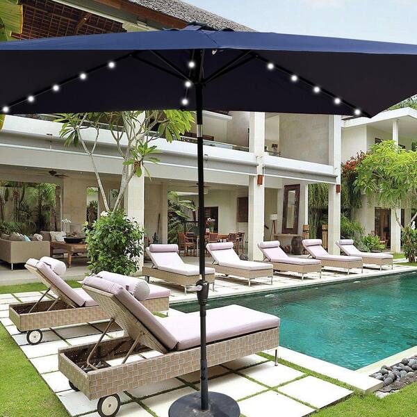 10 ft. x 6.5 ft. Rectangular Patio Solar LED Lights Outdoor Market Umbrella in Navy Blue