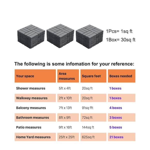 12 in. x 12 in. Wood Interlocking Flooring Tiles Indoor Outdoor Patio Garden Poolside Balcony Backyard, 30-Pack, Gray