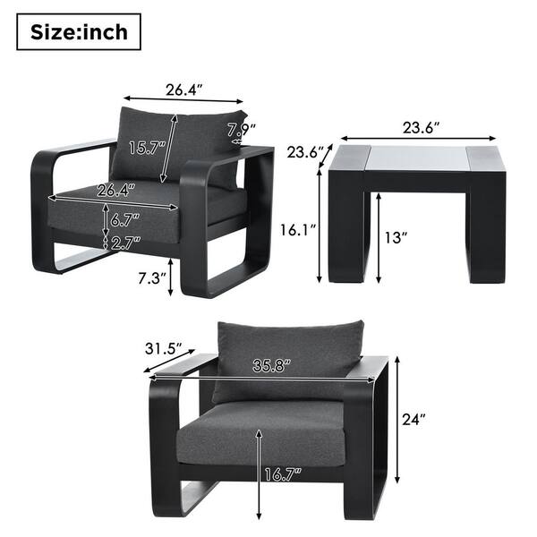 3-Piece Outdoor Patio Furniture Set, All-Weather Olefin fabric Outdoor Chair with Gray Cushions