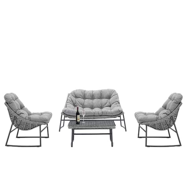 4-Piece Classic Rattan Sofa Set Outdoor Indoor Garden Patio Furniture with Gray Cushions