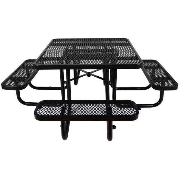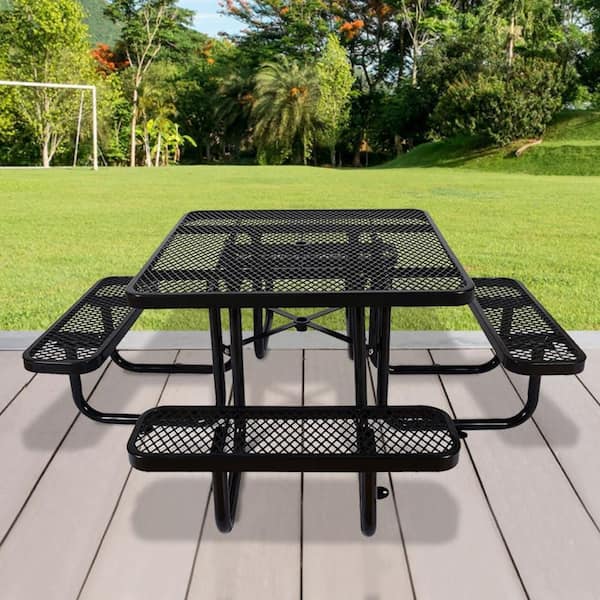 Patio Dining Furniture, 46 in. Square Top Heavy-Duty Steel Outdoor Picnic Table with Umbrella Hole, Black