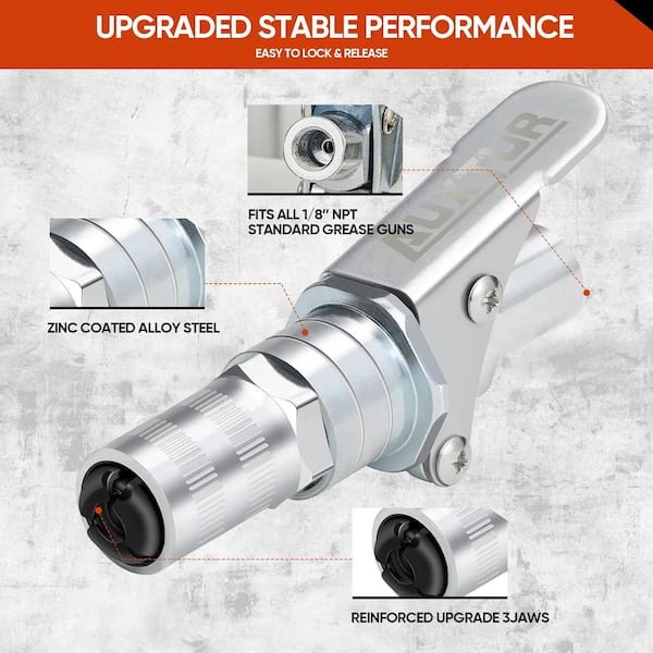 Grease Gun Coupler, 14000 PSI High Pressure Coupler Quick Release Grease(2-Pieces)