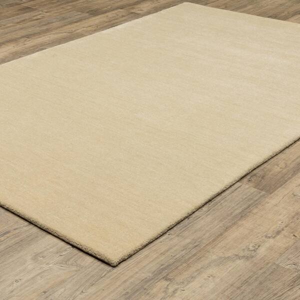 Allaire Beige 5 ft. x 8 ft. Hand-Tufted Solid Heathered 100% Wool Indoor Area Rug