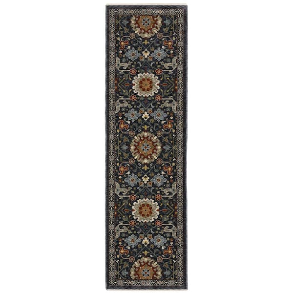 Ambrose Blue/Multi 2 ft. x 8. ft. Oriental Floral Polyester Fringe Edge Indoor Runner Area Rug