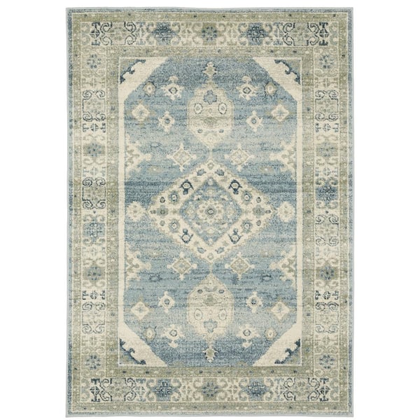 Brixworth Blue/Beige 5 ft. x 7 ft. Oriental Distressed Medallion Polypropylene Indoor Area Rug