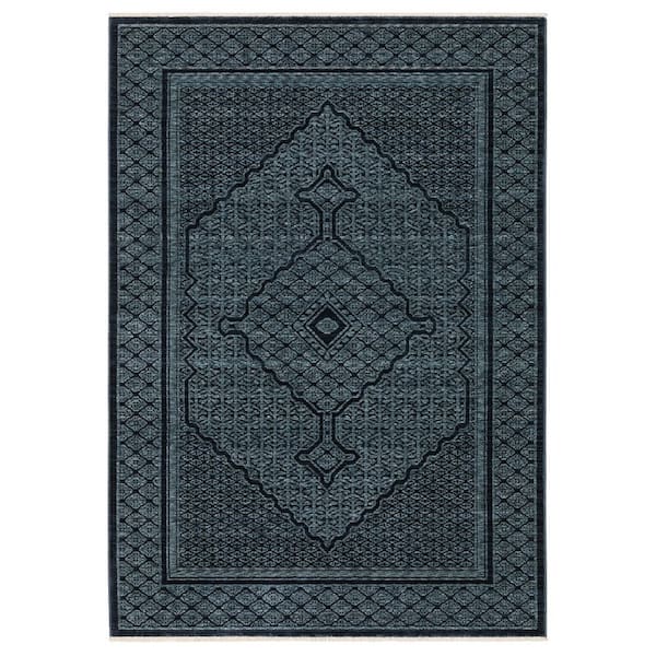 Cage Blue 7 ft. x 10 ft. Center Oriental Medallion Polyester Fringe-Edge Indoor Area Rug