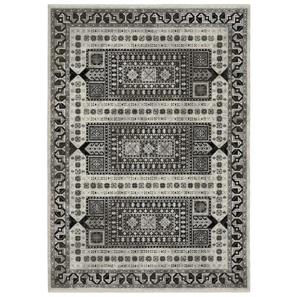 Channing Ivory/Charcoal Doormat 3 ft. x 5 ft. Tribal Geometric Medallion Polyester Fringe Edge Indoor Area Rug