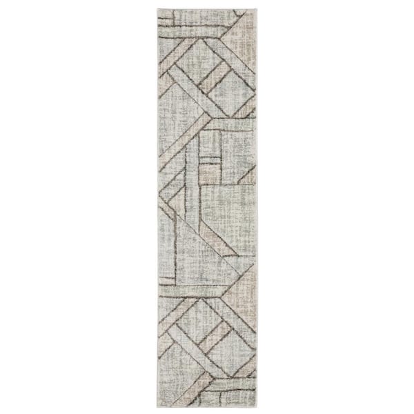 Chateau Gray/Beige 2 ft. x 8 ft. Distressed Geometric Polypropylene Indoor Runner Area Rug