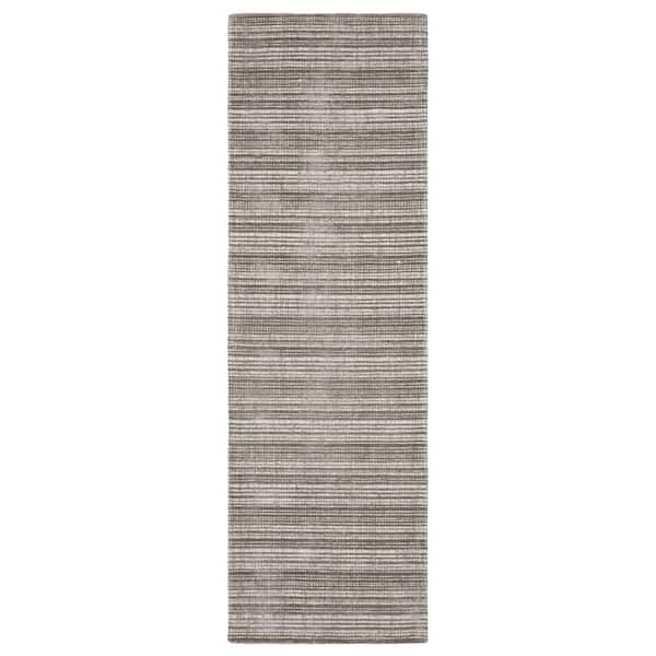 Civic Gray 2 ft. x 8 ft. Geometric Stripe Viscose-Wool Blend Mixed-Pile Indoor Runner Area Rug