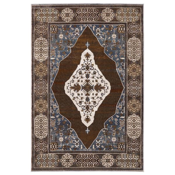 Edgewater Rust/Blue 5 ft. x 8 ft. Vintage Oriental Medallion Polyester Indoor Area Rug