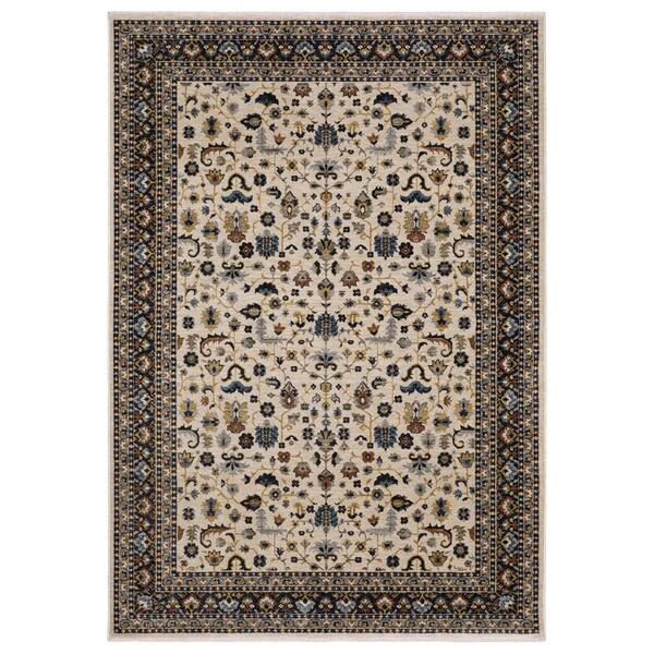 Elanor Beige/Multi 6 ft. x 9 ft. Oriental Floral Polyester Fringe-Edge Indoor Area Rug