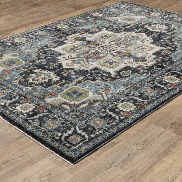 Elanor Blue 10 ft. x 13 ft. Oriental Floral Medallion Polyester Fringe-Edge Indoor Area Rug