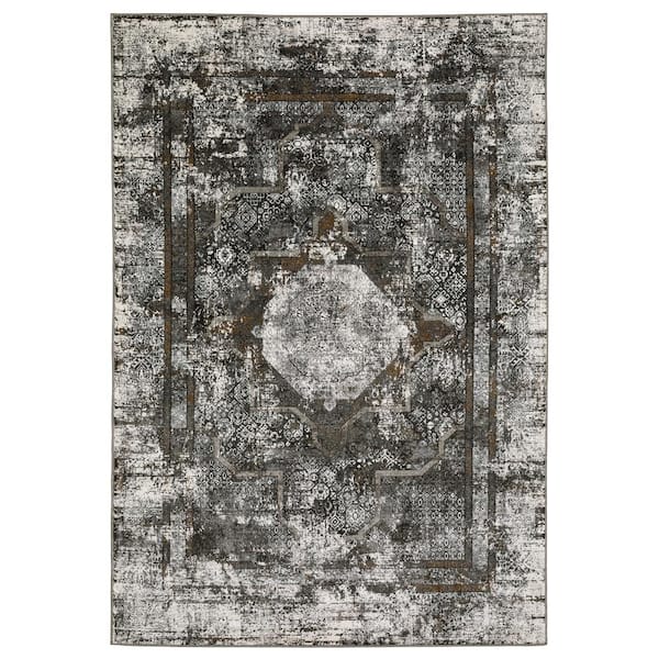Galleria Charcoal 6 ft. x 9 ft. Distressed Oriental Medallion Polyester Indoor Area Rug