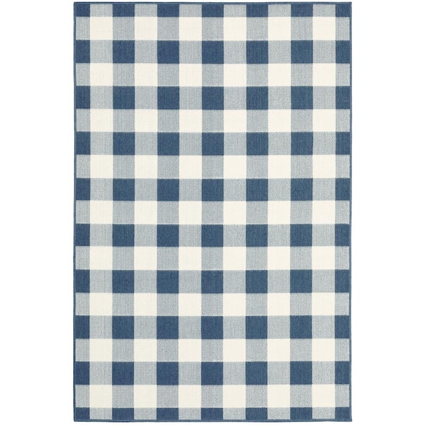 Messina Blue/Ivory 5 ft. x 8 ft. Geometric Gingham Check Polypropylene Indoor/Outdoor Area Rug