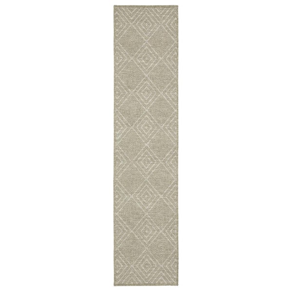 Thrasher Beige 2 ft. x 8 ft. Geometric Diamonds Polypropylene Indoor/Outdoor Runner