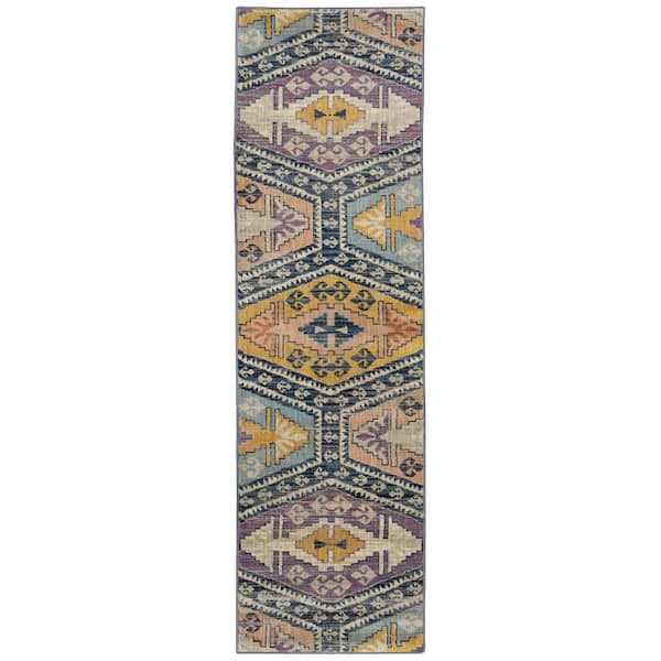 Xavier Blue/Multi 2 ft. x 8 ft. Tribal Runner Rug