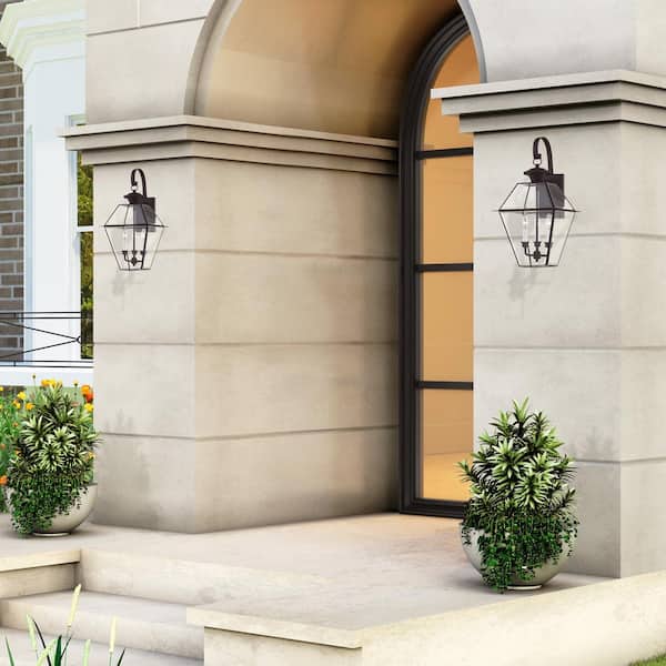 Ainsworth 22.5 in. 3-Light Bronze Outdoor Hardwired Wall Lantern Sconce with No Bulbs Included