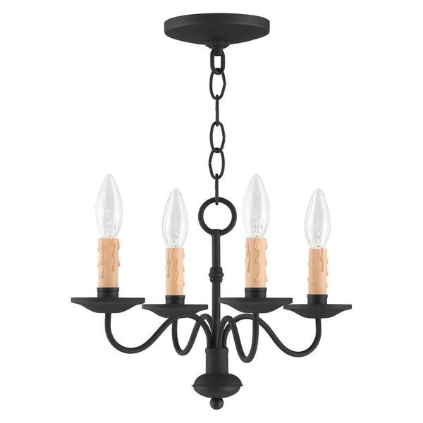 Archwood 4-Light Black Mini Chandelier with Drip Candle Cover