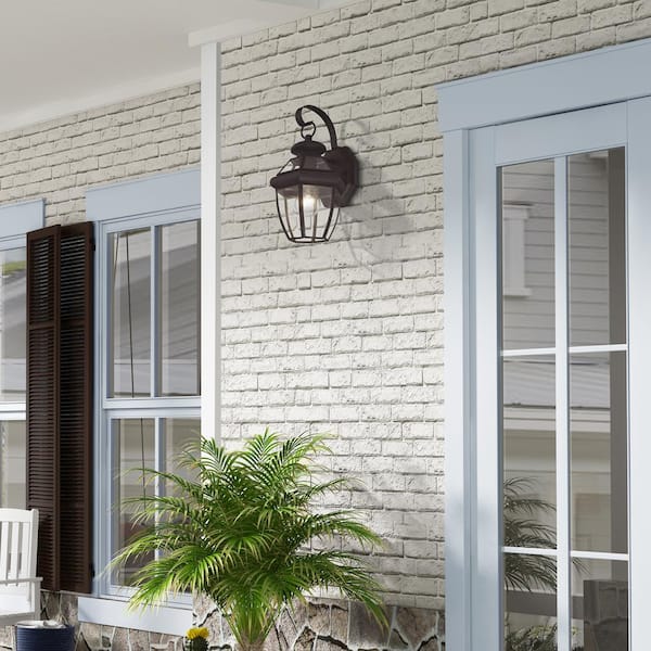 Aston 12.5 in. 1-Light Bronze Outdoor Hardwired Wall Lantern Sconce with No Bulbs Included