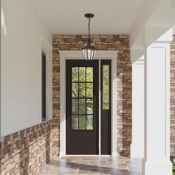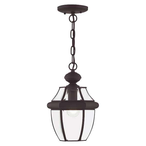 Aston 12.75 in. 1-Light Bronze Dimmable Outdoor Pendant Light with Clear Beveled Glass and No Bulbs Included