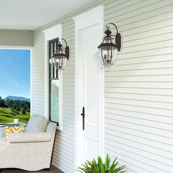 • Bronze outdoor wall lantern with clear beveled glass