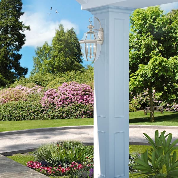 Aston 22.5 in. 3-Light Brushed Nickel Outdoor Hardwired Wall Lantern Sconce with No Bulbs Included