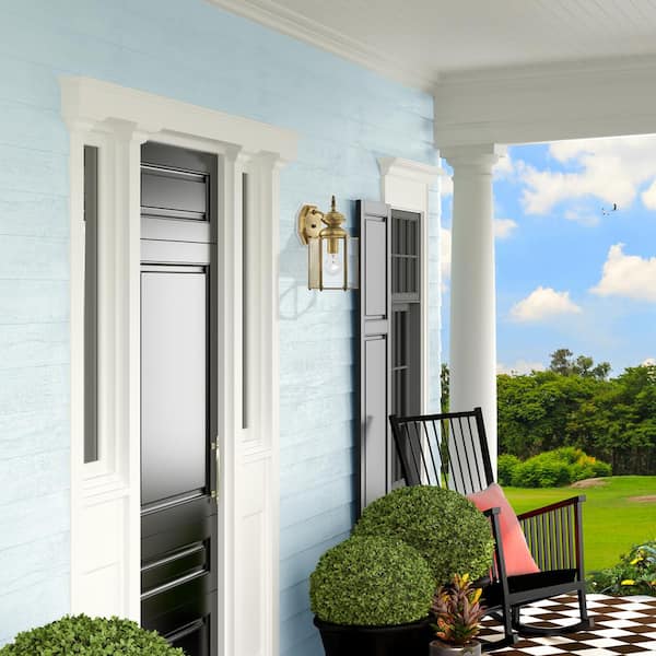 Bannington 13 in. 1-Light Antique Brass Outdoor Hardwired Wall Lantern Sconce with No Bulbs Included