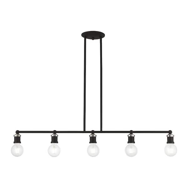 Beckford-5 Light Black with Brushed Nickel Accents Large Linear Chandelier