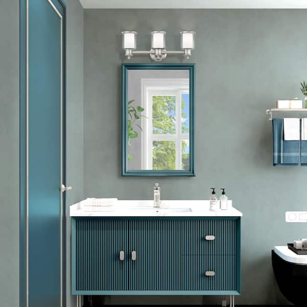 Bellington 23.5 in. 3-Light Brushed Nickel Vanity Light with Clear Outer Glass and Satin Opal Inner Glass